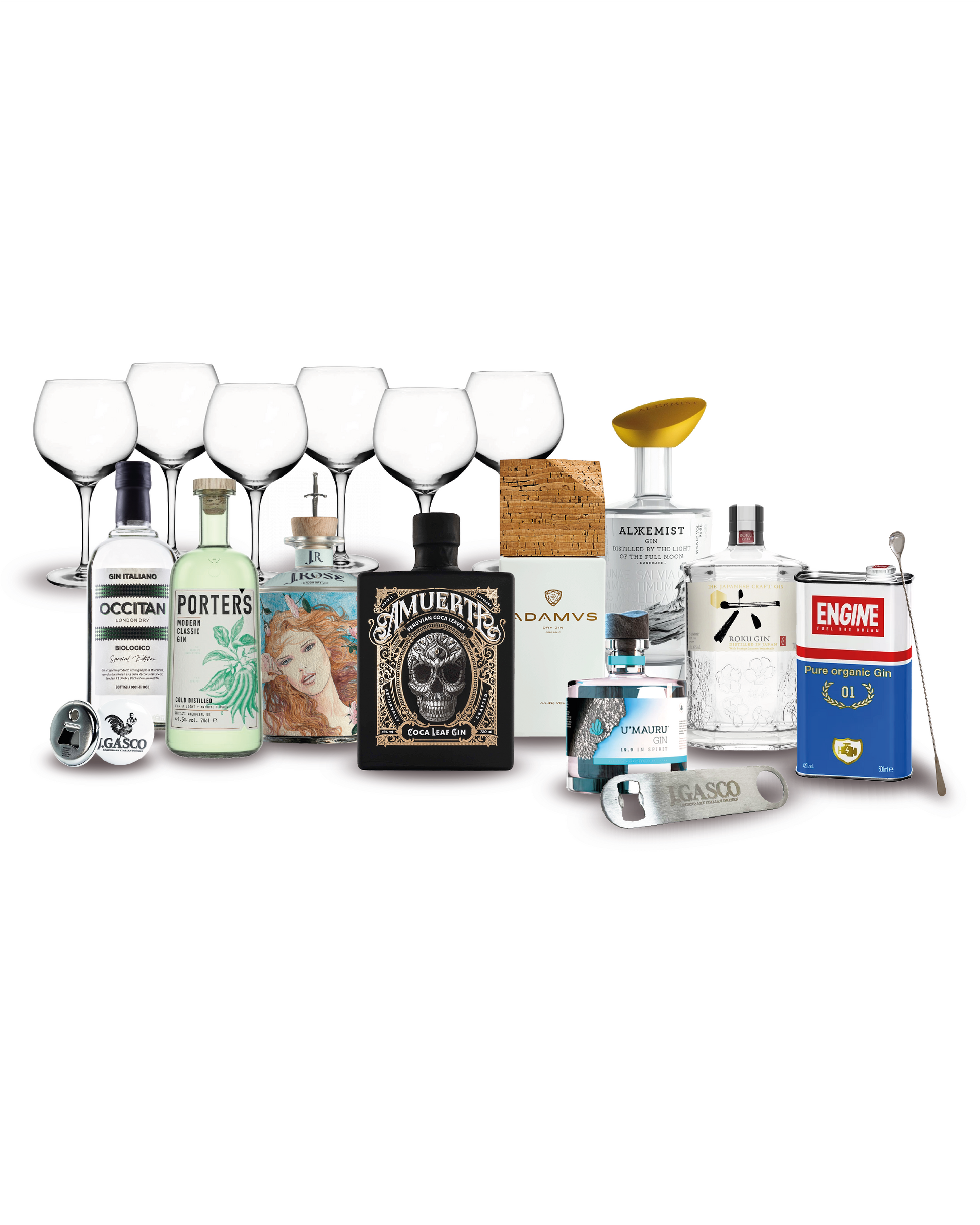 Il top per i veri cultori del gin. 9 bottiglie iconiche e rare, accompagnate da un set professionale completo per mixology e degustazione. Un’esperienza sensoriale ed estetica al massimo livello.
